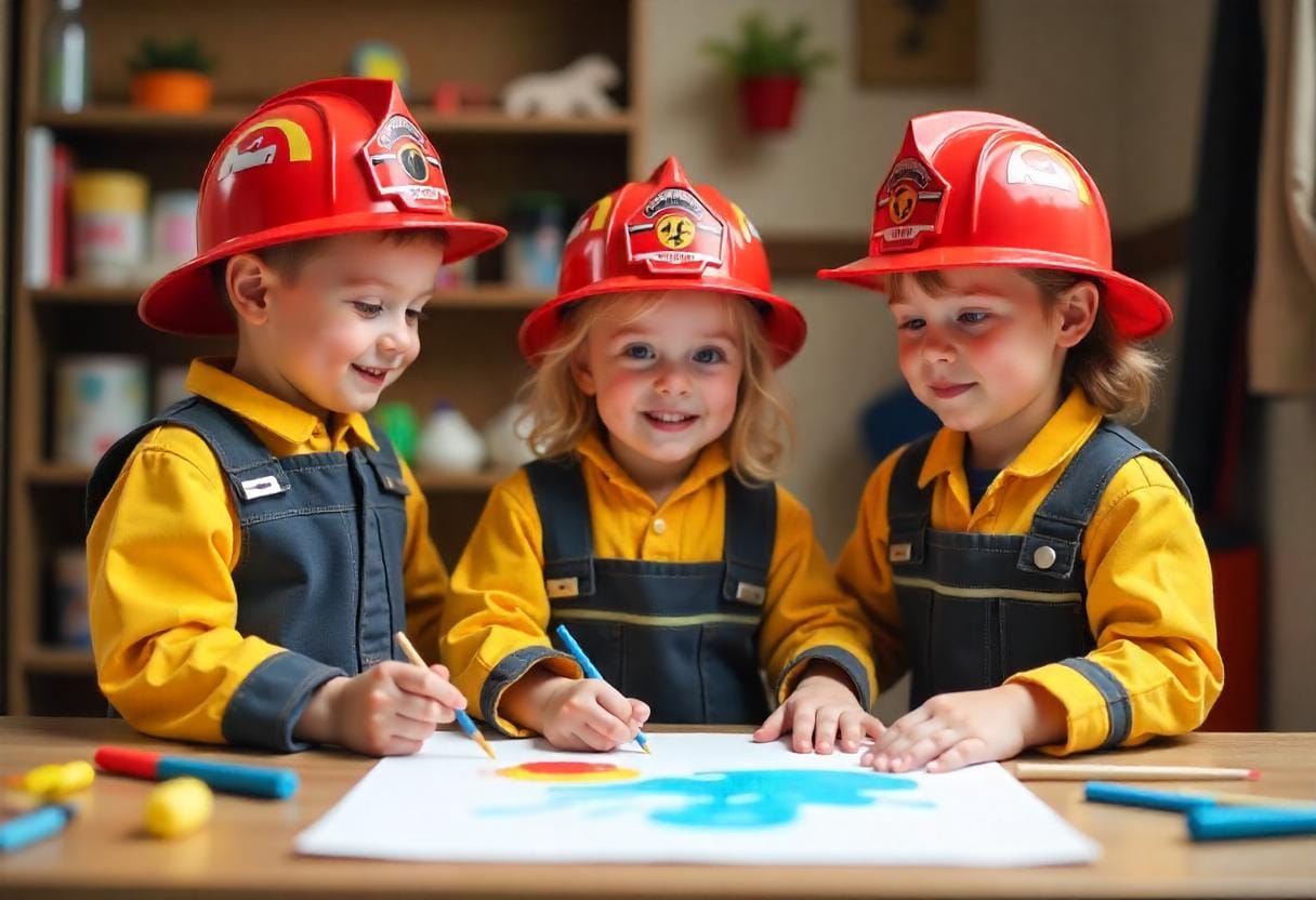 🌟 Idée fun : Installez un coin « galerie d’art pompier » où les enfants pourront accrocher leurs œuvres une fois terminées !