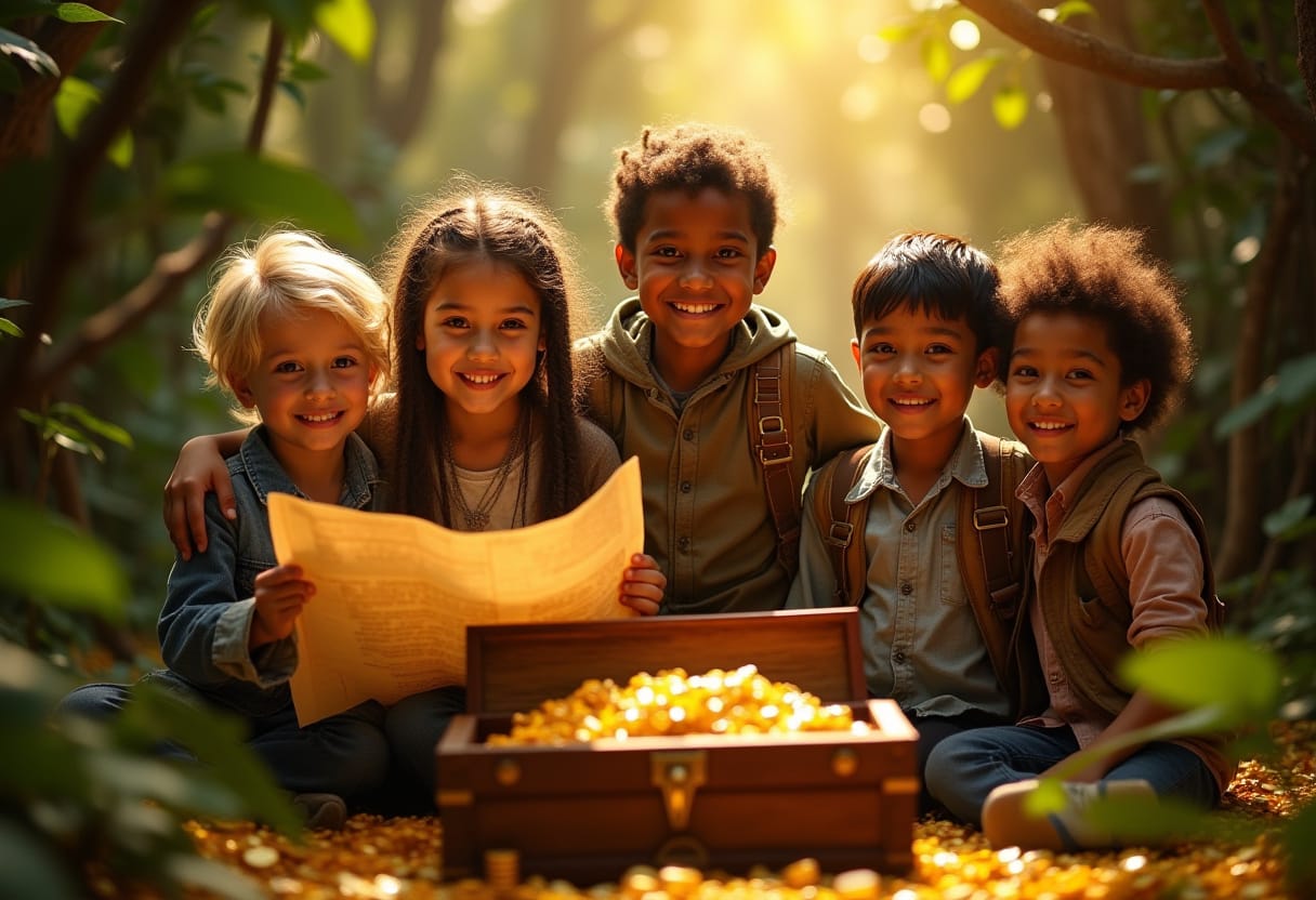 - Option bonus : ajoutez une épreuve finale avant d’ouvrir le coffre (ex. : réciter une formule magique, crier “À l’abordage !”, ou faire une ronde autour du butin).