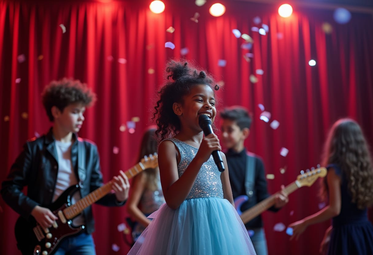 “Mesdames et messieurs, bienvenue au Grand Show des Petites Stars ! Ce soir, préparez-vous à applaudir des performances dignes des plus grandes scènes du royaume FestiKid !”