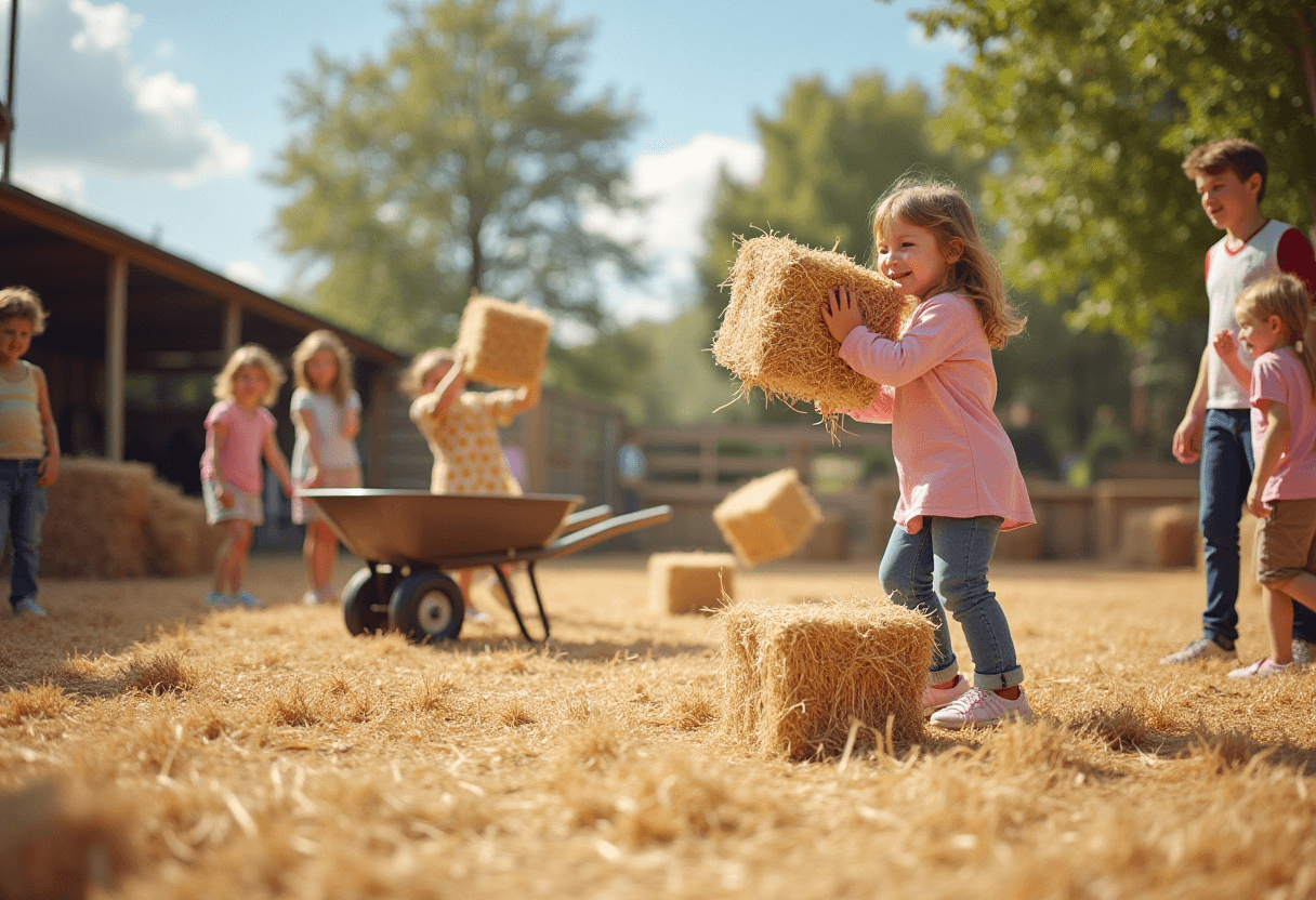 💬 Et pour le fun : prépare un « panneau des scores » façon foire locale. Tu verras les enfants se prendre pour des pros du lancer de foin 🐮✨
