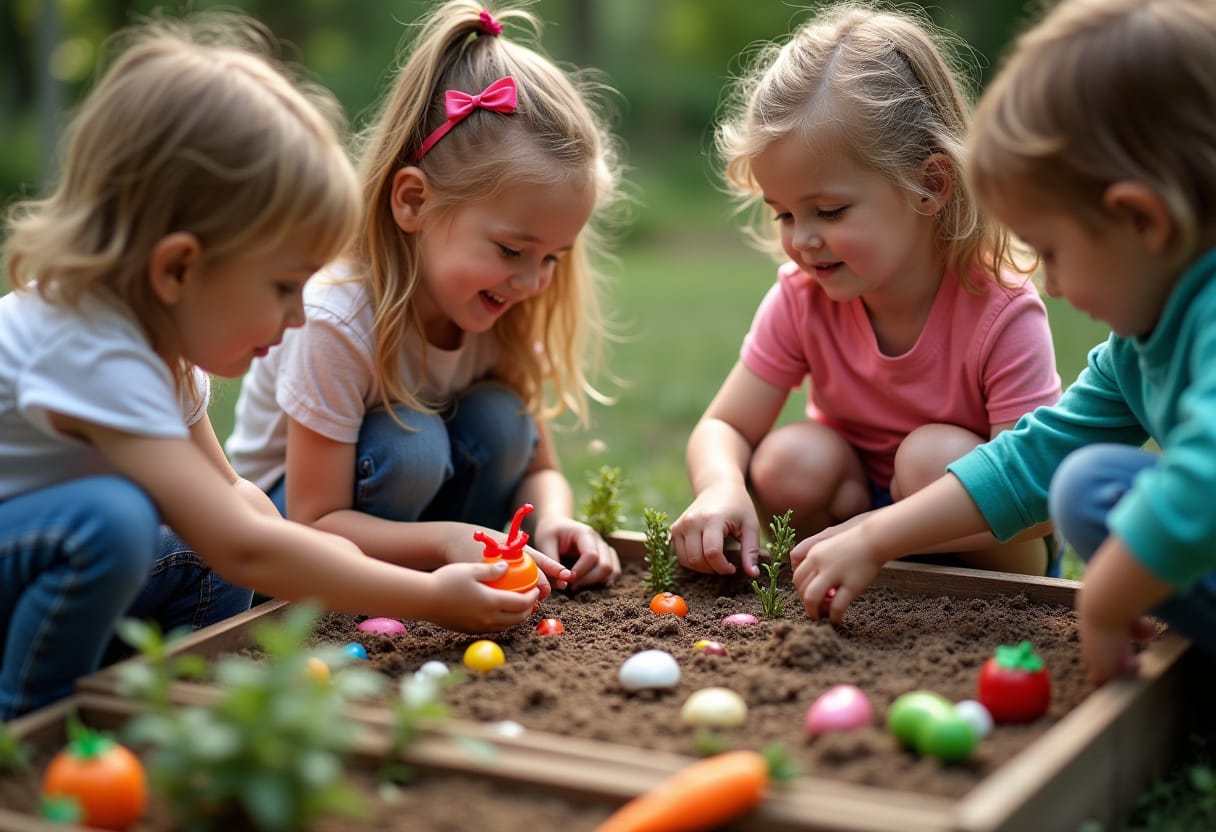 💡 Astuce : prépare une légende ou un guide imaginaire du potager (ex. : la graine dorée pousse un mini dragon en plastique, la bleue fait apparaître une étoile surprise !)