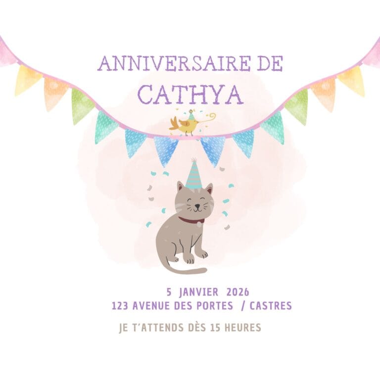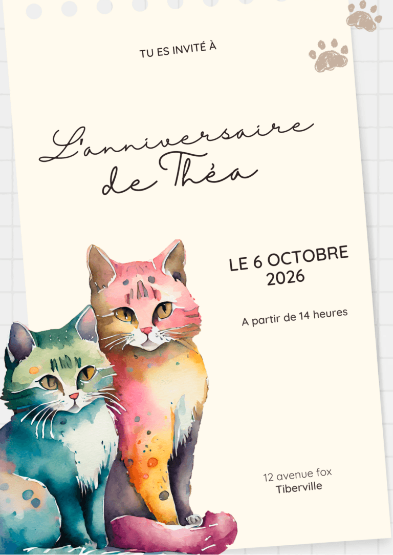 🐱🎉 Miaou par ici les invitations trop craquantes ! Nos invitations Anniversaire chat sont parfaites pour tous les petits amoureux des félins. Avec leurs adorables illustrations, leurs couleurs douces et leurs minois attendrissants, ces cartes feront ronronner de bonheur tous les invités 😻💌. Qu’il s’agisse d’une fête sur le thème des chats, des animaux ou simplement d’un univers tout doux, ces invitations mettent tout le monde d’accord : c’est parti pour une journée pleine de câlins, de jeux… et de gourmandises ! 🎂🐾 Glissez-les dans une enveloppe ou remettez-les à la main, et laissez la magie opérer ! 🌟