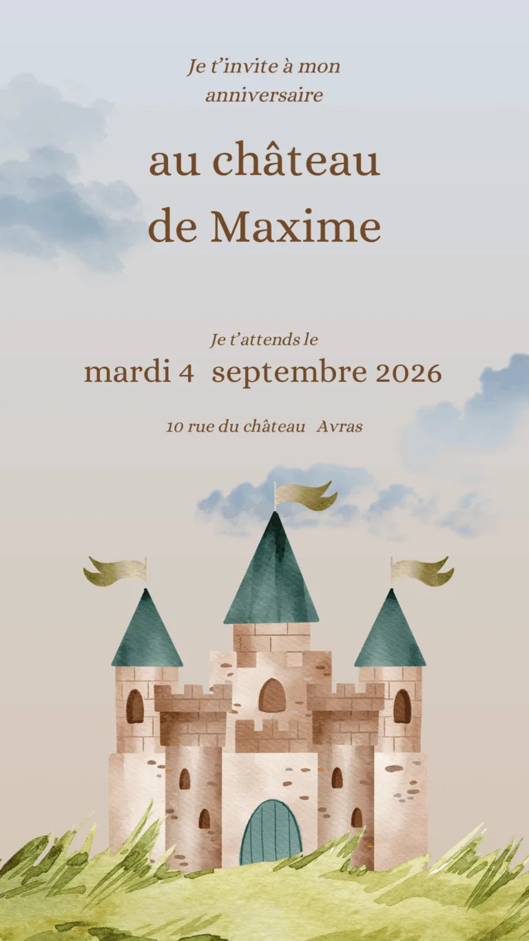 đĄïžđ° En garde ! Avec nos invitations Anniversaire Chevalier, lâaventure commence dĂšs la boĂźte aux lettres ! Ces cartes dignes des plus grandes Ă©popĂ©es annoncent une fĂȘte royale oĂč bravoure, quĂȘtes et festins seront Ă lâhonneur âïžđ. Armures scintillantes, chĂąteaux majestueux et dragons mystĂ©rieux donnent le ton dâune journĂ©e pleine de rebondissements et dâimagination. Parfaites pour tous les petits preux en quĂȘte de gloire et de fun, ces invitations promettent une cĂ©lĂ©bration mĂ©diĂ©vale pleine de panache. PrĂ©parez les Ă©cussons, les Ă©pĂ©es et les boucliers⊠la fĂȘte du royaume est lancĂ©e ! đđ