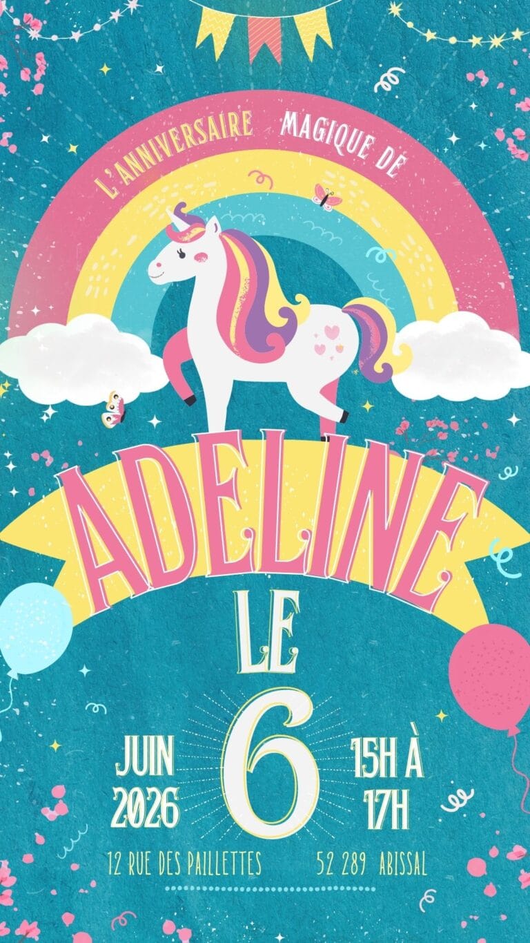 đŠđ Ouvrez grand les yeux⊠la magie commence ici ! Avec nos invitations Anniversaire Licorne, chaque carte est une promesse dâenchantement, de paillettes et de rĂȘves colorĂ©s âšđ«. Entre arcs-en-ciel, Ă©toiles scintillantes et crĂ©atures fantastiques, ces invitations transportent les enfants dans un monde féérique oĂč tout devient possible. Parfaites pour une fĂȘte pleine de douceur, de surprises et de magie, elles feront briller les yeux des petits invitĂ©s dĂšs lâouverture de lâenveloppe. Un seul mot dâordre : croire en la magie⊠et prĂ©parer sa plus belle tenue de licorne ! đđŠ