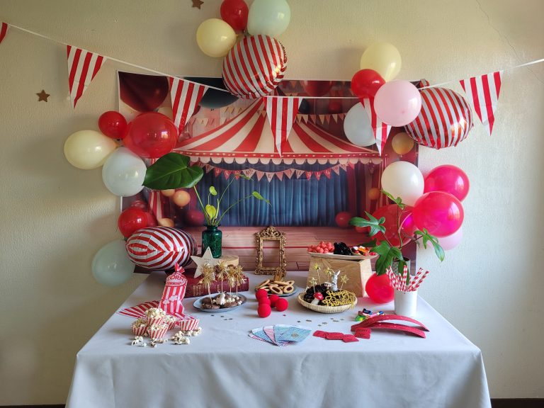 Plongez dans la magie du chapiteau ! Ce kit cirque transforme l’anniversaire de votre enfant en un spectacle haut en couleur, rempli de rires, de jeux et d’émerveillement.