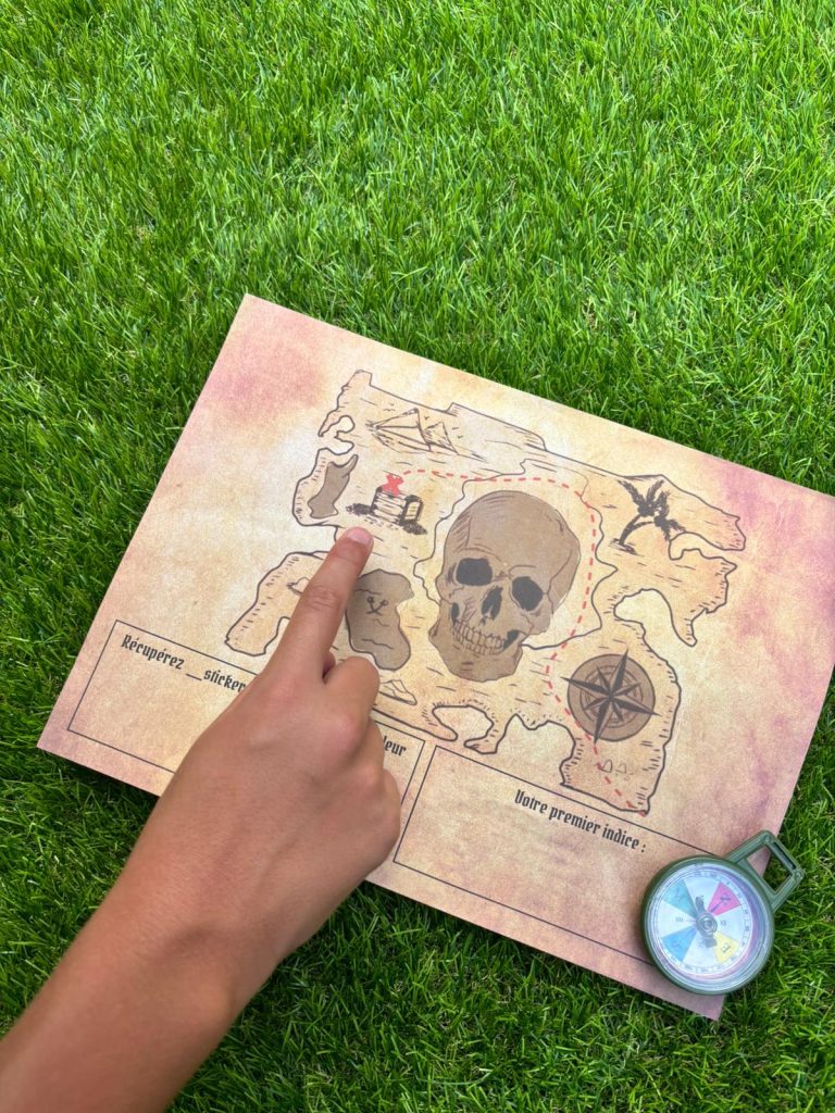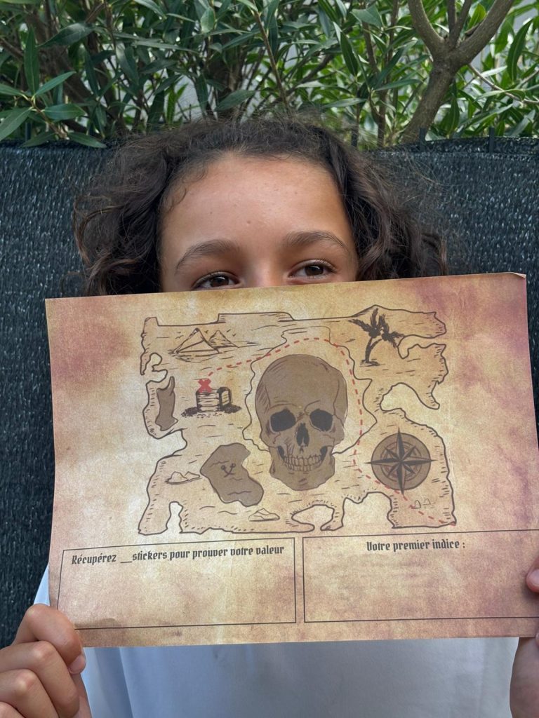 Cap sur l’aventure avec une véritable chasse au trésor ! Carte en main, les enfants suivent les indices, relèvent des défis de pirates et avancent étape après étape jusqu’au coffre final. Guidés par un vrai pirate en vidéo 🎥 et portés par des autocollants à collectionner, ils se transforment en corsaires intrépides à la recherche du butin caché 💰.