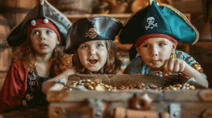Atelier déco ? Bien sûr : on personnalise son chapeau de pirate avec des autocollants et des paillettes (oui, même les pirates aiment les paillettes). Et on crie tous ensemble “À l’abordage !” avant de dévorer les pièces en chocolat.