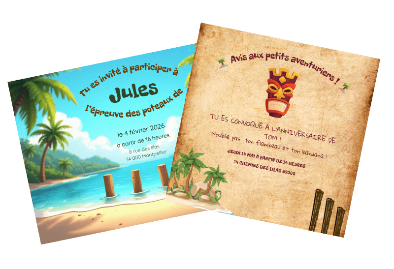 Avant que les aventuriers ne puissent débarquer sur l’île, ils doivent recevoir leur convocation officielle ! Une invitation anniversaire Koh-Lanta bien pensée doit immédiatement éveiller leur esprit de compétition et les plonger dans l’excitation de l’aventure.